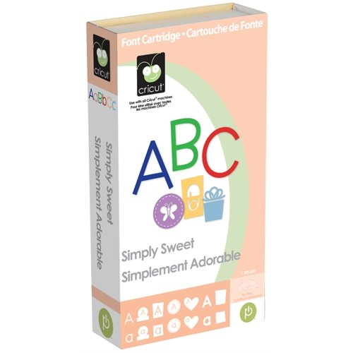 Go back to basics with this font cartridge. Simply Sweet contains a classic font with a full alphabet, numbers, common punctuation, icons, and phrases. With the delightful creative features, you can also cut out the images on tabs, blocks, stitched circles, and hearts.